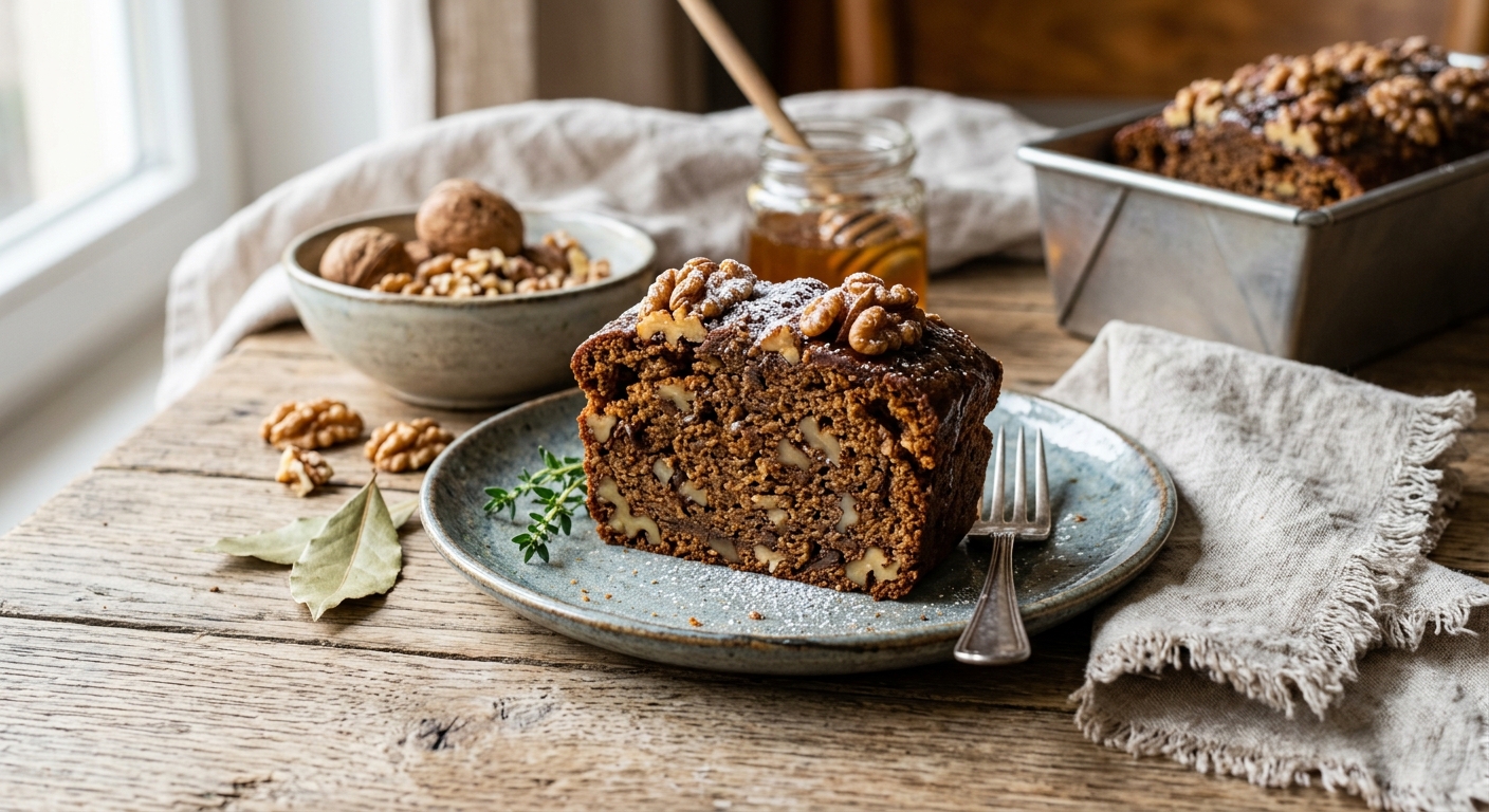 Saftiger Harzer Honigkuchen mit Walnüssen – ein traditionelles Rezept aus dem Harz mit regionalem Bienenhonig,...